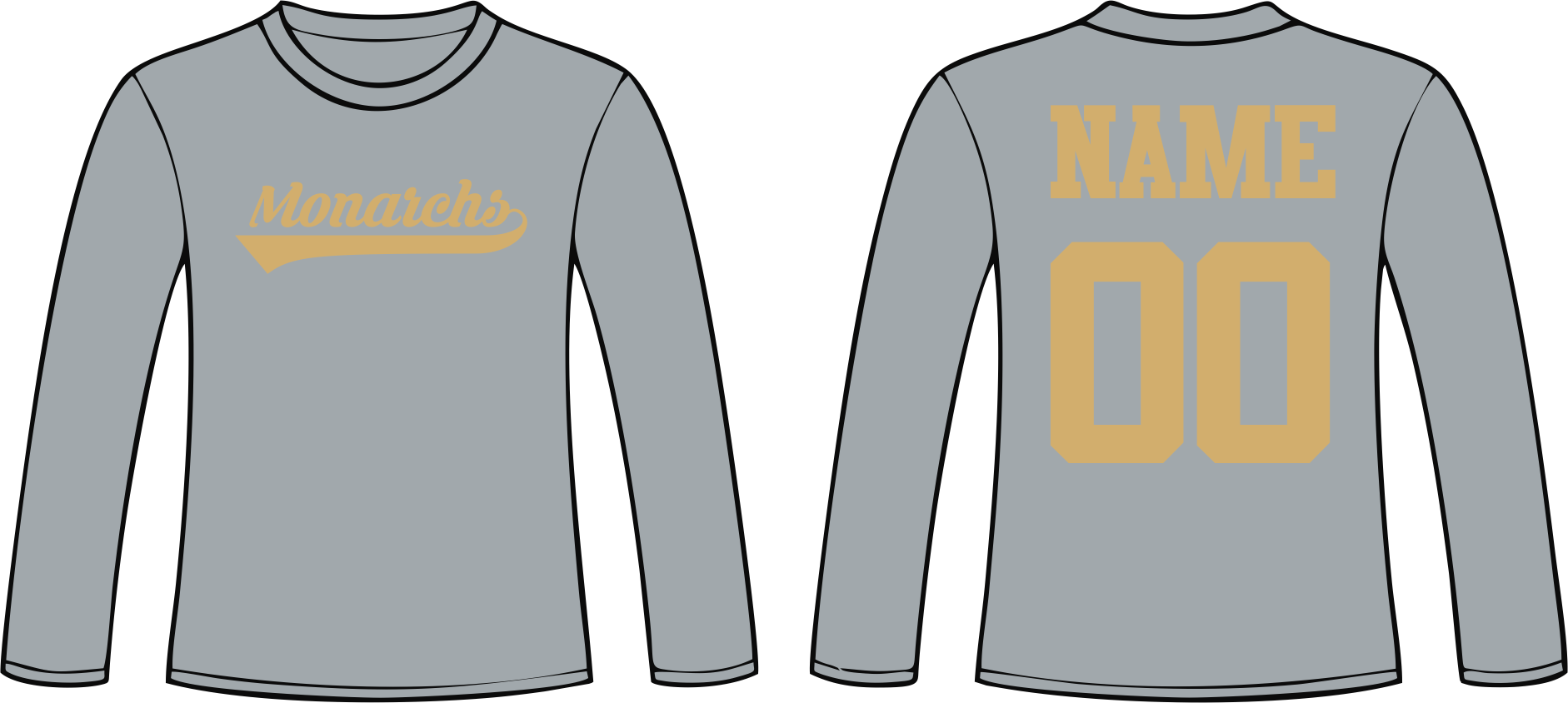 The sweatshirts come in black, navy, and grey. Add a name and number on the back for an additional $10.