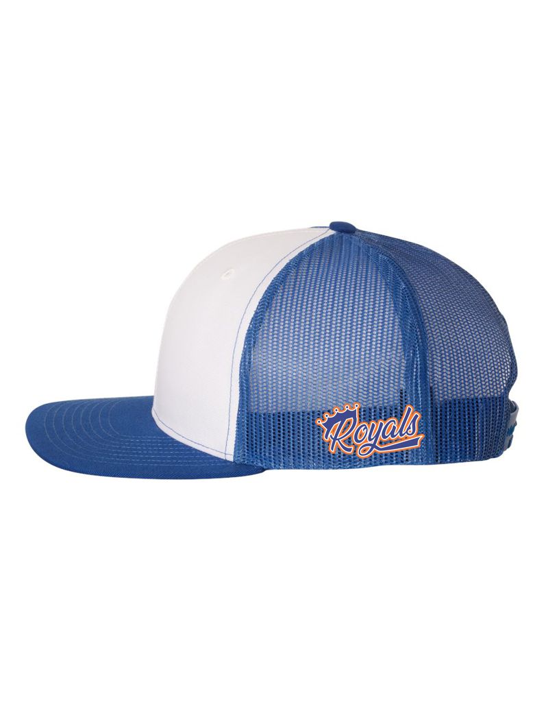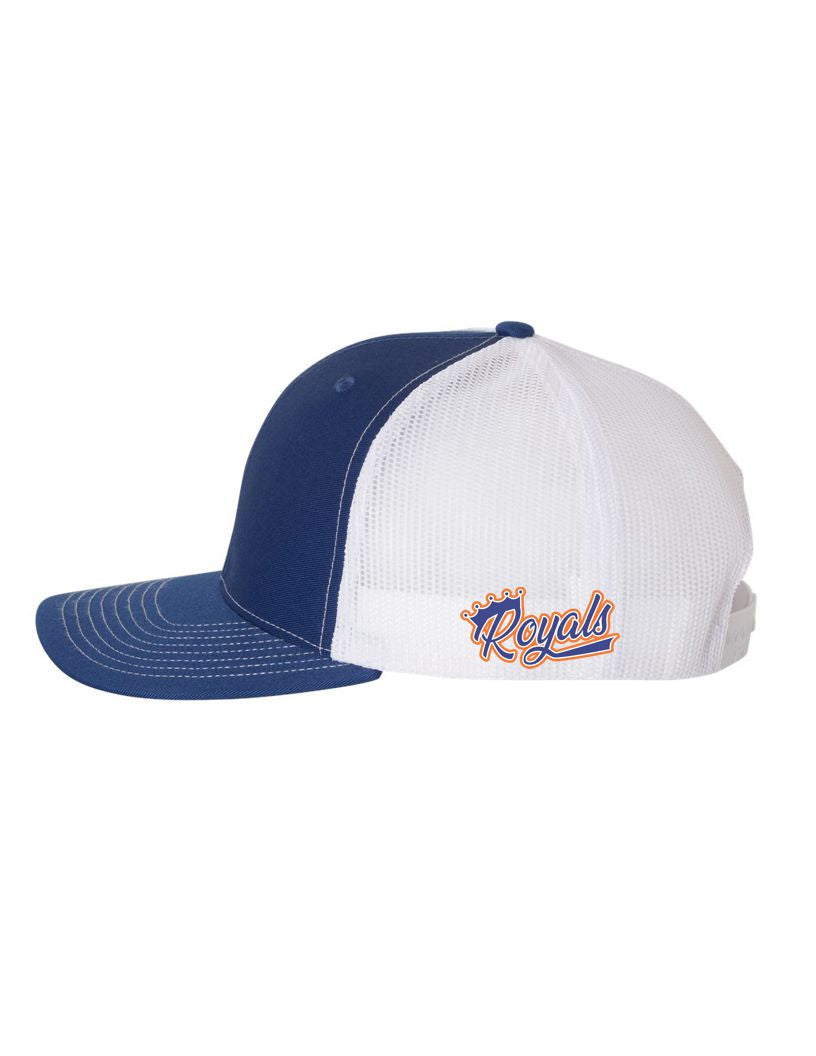 We have a couple options for Royals headwear! Both are embroidered on Richardson 112 caps. One of them is Royal Blue with a White back and the other is White with a Royal Blue back.