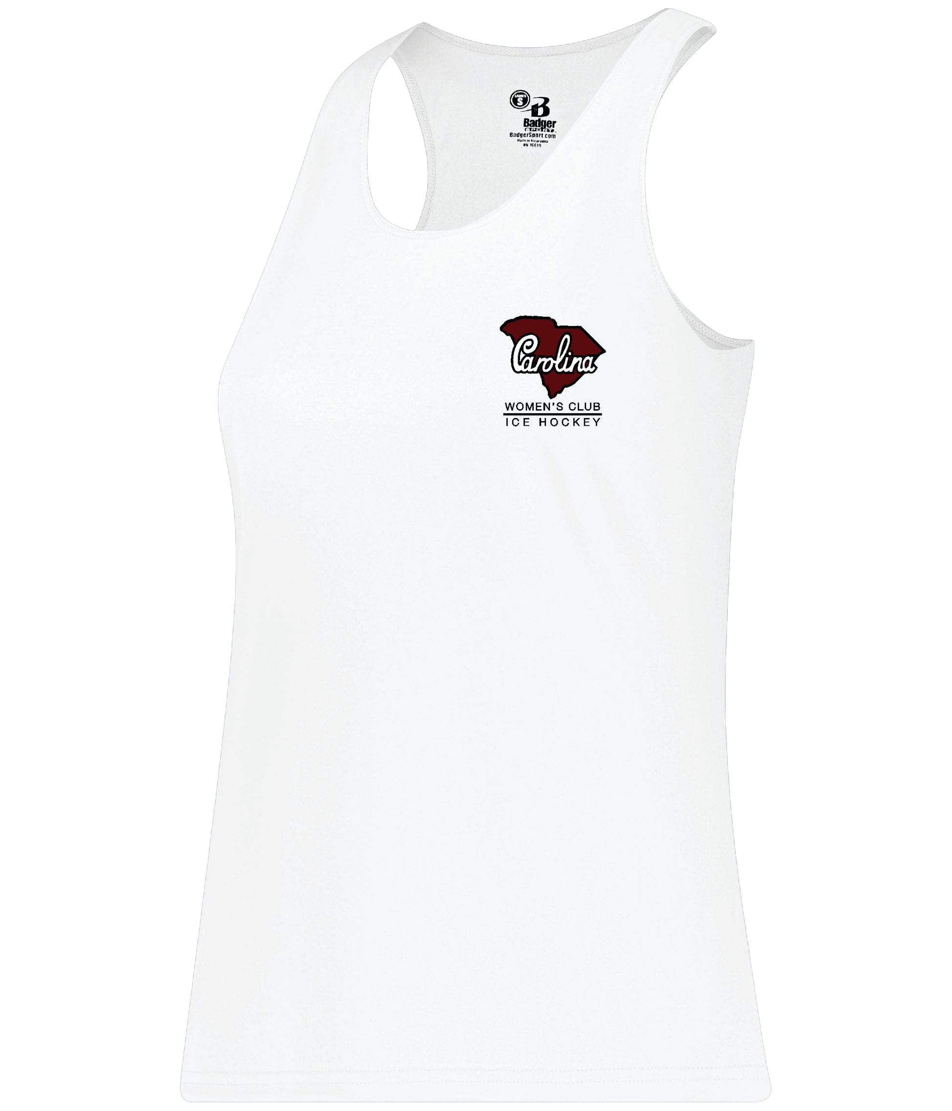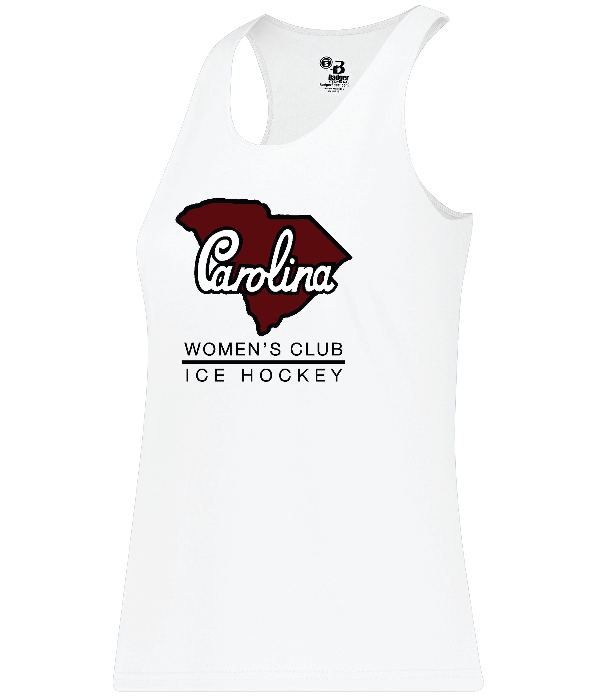 Featuring a women's racerback tank with the USC Women's Hockey crest or SC state logo on the left chest or full chest! Available in white, graphite grey, and black.